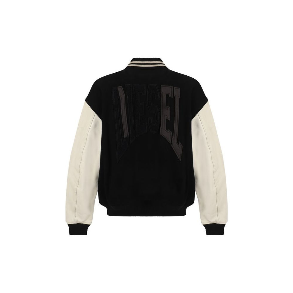 Wool L-Nyman Jacket by Diesel features ribbed collar, snap button front closure, ribbed cuffs, ribbed hem, two side welt pockets, contrast sleeves, iconic monogram on front and back, regular fit.