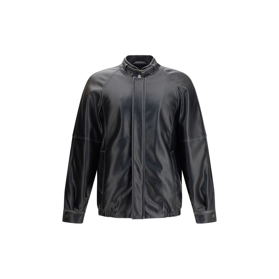 The MM6 flight-style Jacket reinterprets aviator heritage with a contemporary touch. The stand collar with buckle nods to classic military design, while tone-on-tone stitching and the curved back yoke balance structure with softness. Elasticated hem and cuffs provide comfort and ease of movement, and the subtle white stitch line at the back discreetly marks the jacket’s signature detail.