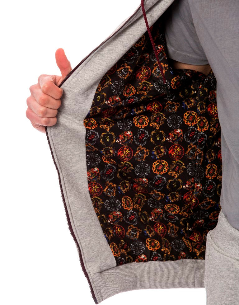 Logo is patched at the left side chest, at the hanger tab, also branded strings’ endings & zips’ pull tabs