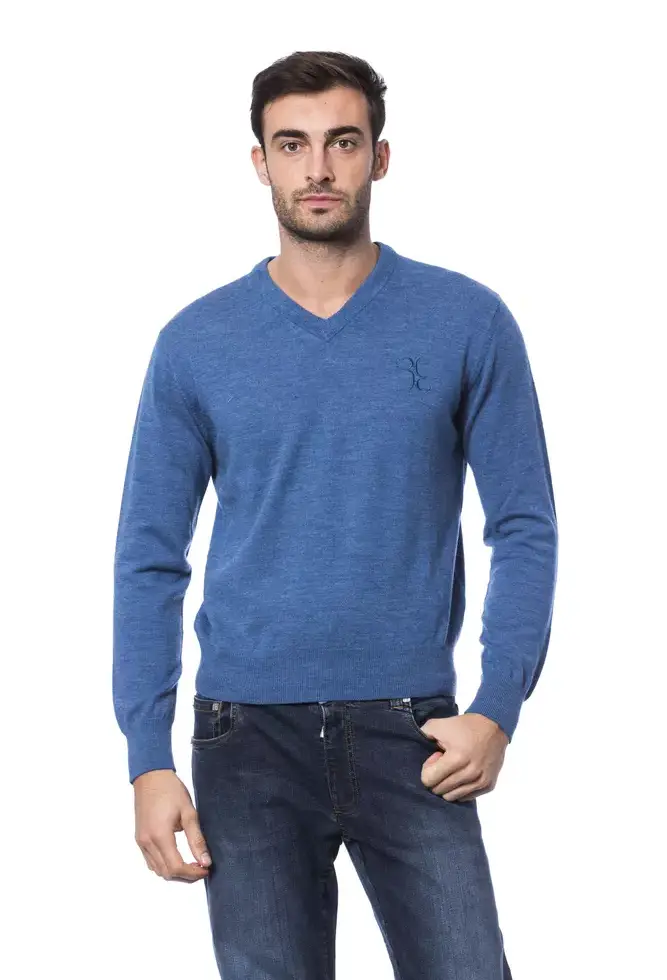 Indulge in the epitome of luxury with this exquisite crew neck sweater from Billionaire Italian Couture. Crafted from the finest 100% Merino Wool, this piece is a testament to timeless elegance and superior comfort. The intricate embroidery adds a touch of opulence, making it perfect for any discerning gentleman looking to elevate his wardrobe. Made with pride in Italy, this blue sweater is both a wardrobe staple and a work of art.