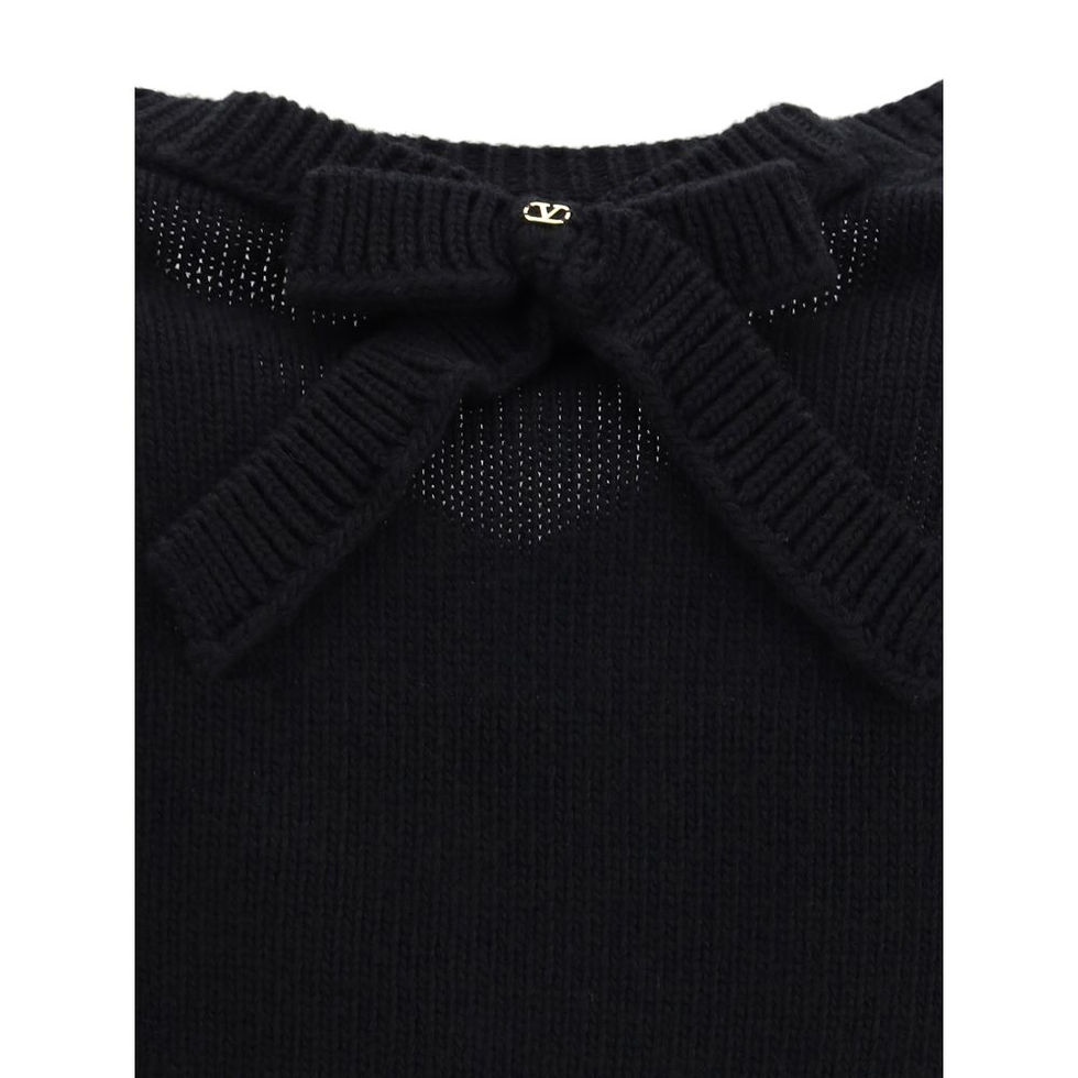 The Valentino Garavani Wool Sweater combines essential lines with couture-inspired details. Featuring a refined V-neckline, the design is elevated by a statement bow at the back, adding a feminine touch to the silhouette. Finished with cuffed sleeves and a metallic V Logo detail, this sweater blends minimal elegance with iconic sophistication.