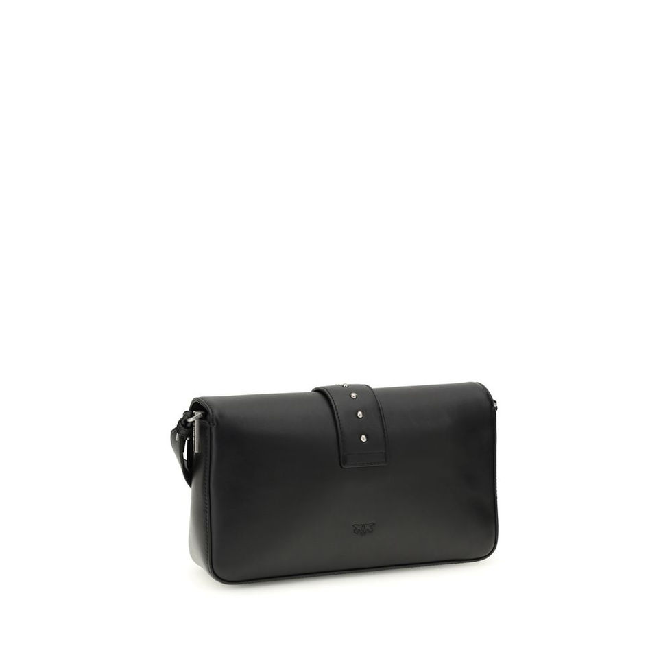 The Love One Shoulder Bag by Pinko in smooth calf leather features a rectangular shape, flap and magnetic button closure, and removable, interchangeable leather and chain straps. Details include a Love Birds buckle, logo plaque, and leather trims, while the interior with pocket and customized lining ensures practicality.
