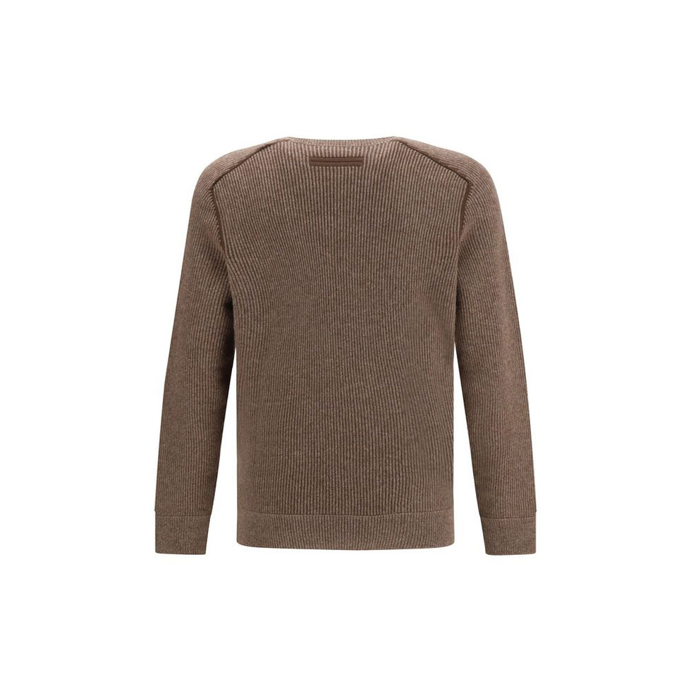 The Cashmere Crew Neck Sweater by Zegna is an essential piece with refined style. Its ribbed texture enhances the luxurious yarn, while darker-toned lines emphasize the shoulder construction, adding depth and character to the design. A garment that blends comfort and sophistication, perfect for everyday elegance.